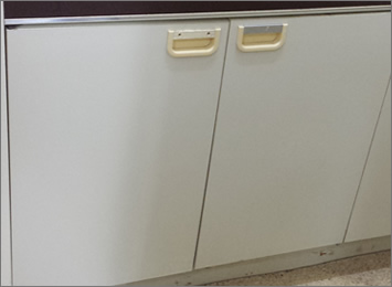 小さなリフォームもお任せ!流し台下の戸棚が古っぽいので、汚れにくいナチュラルな感じの戸棚に変身です。