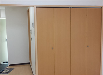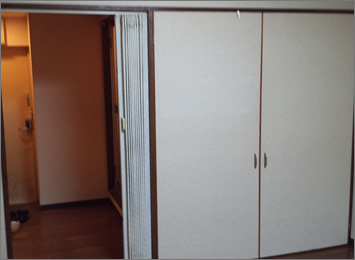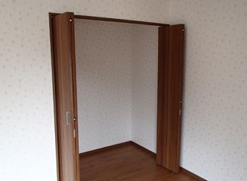使い勝手が悪い観音開きの大きい扉のクローゼットを、使いやすいアコーディオンタイプにしました。