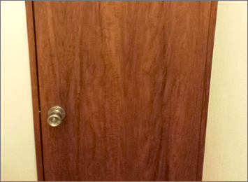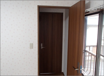 白いタイプの旧式ドアを、落ちついた木目調のモダンなタイプのドアにチェンジしました。
