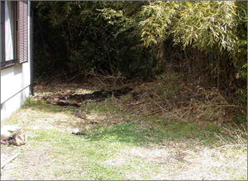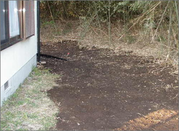 裏庭の芝生を刈り、厄介な竹の根っこの侵入を防ぐために、地中にフィールドを設けたので、これで安心です。