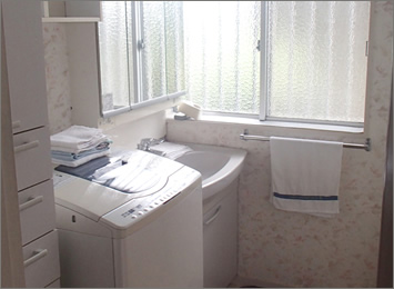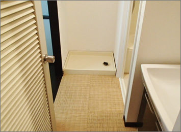 昔ながらの脱衣場をシックな印象にリフォームしました。