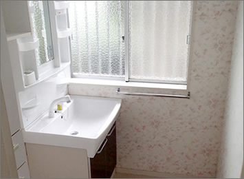洗面所の床・クロス・洗面台をリフォームしました。水廻りがキレイだと気持ちがいいです。