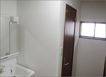 洗面化粧台をトイレと一緒にしました。