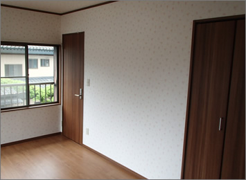 襖がある和室を取り除き、クロスと床を若者に人気のシックなデザインに変えました。