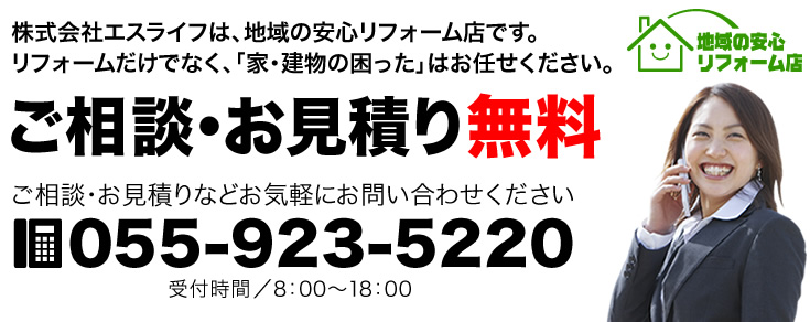 沼津市・三島市の家や建物のリフォーム・リノベーション・水廻り・クロス・床・外壁・塗装・掃除・トラブルはプロ集団のエスライフにお任せ!